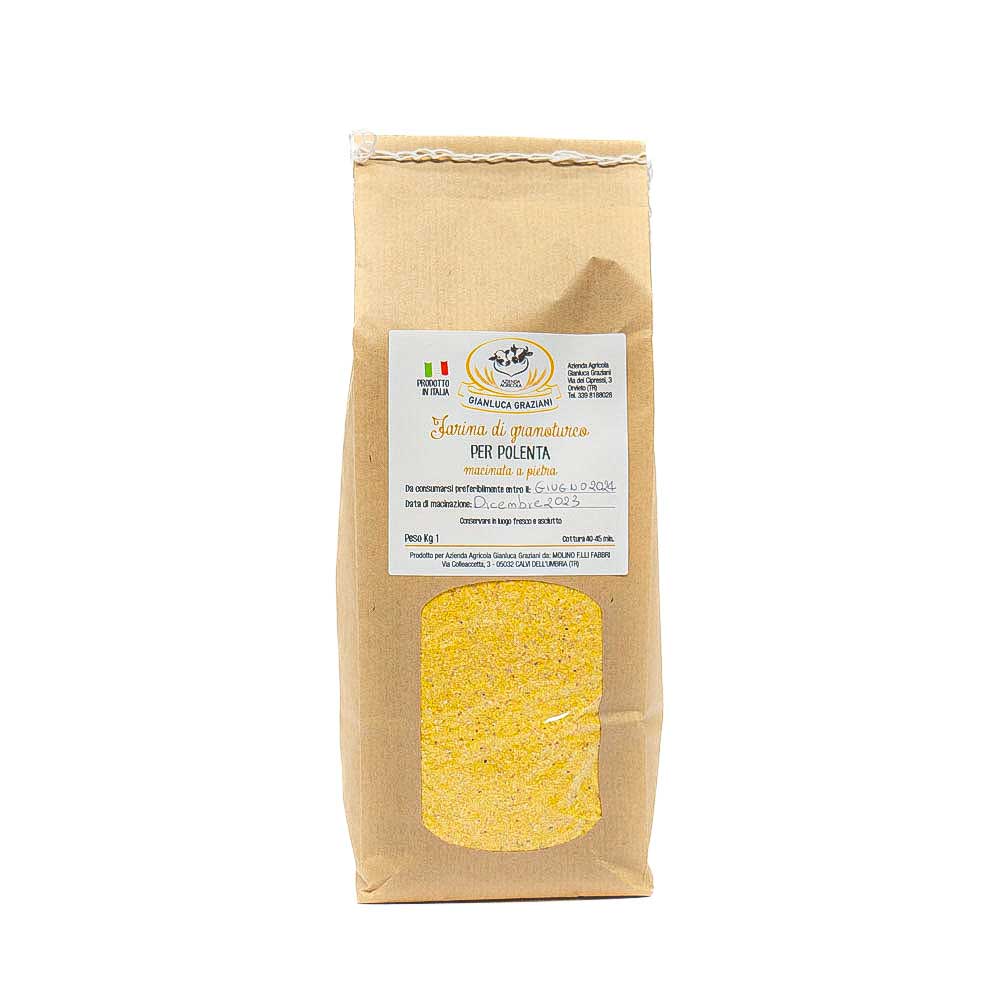 Farina per Polenta da 1kg adatta alla produzione della polenta. Proviene da una varietà di mais chiamato “Belgrano”. Viene macinata a pietra così da mantenere tutte le sue caratteristiche organolettiche. Necessita di una cultura di 40-45 minuti proprio come una volta.