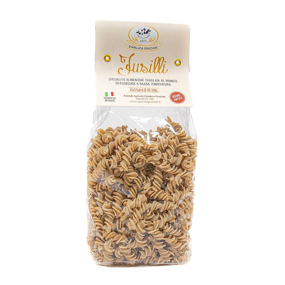 I Fusilli sono ottenuti dalla semola di grano duro “Senatore Cappelli”. Preparati semplicemente con semola ed acqua, trafilati al bronzo, si prestano ad ogni tipo di condimento.