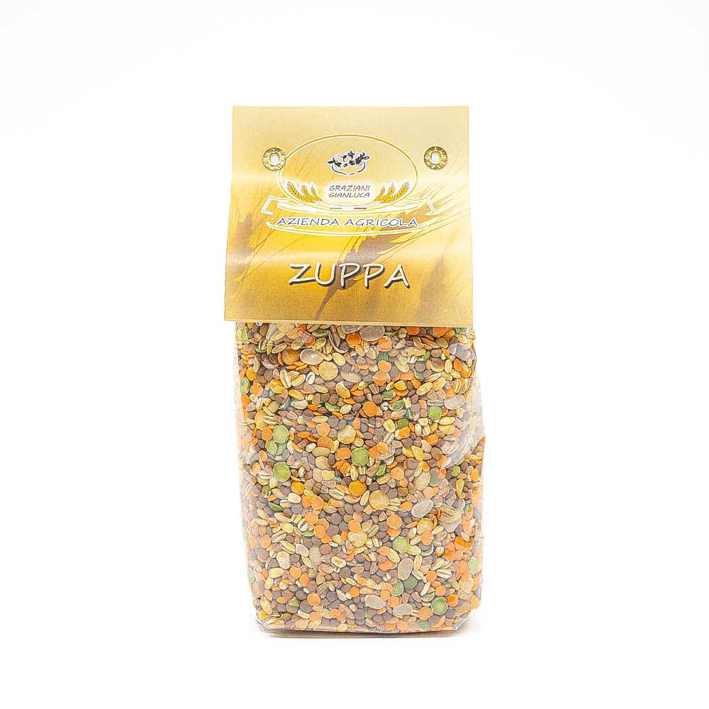 Zuppa del Brigante 500g. Ottenuta da un mix di legumi e cereali che ne garantiscono un piatto sano e genuino. non necessita di ammollo, cultura 50-60 minuti.